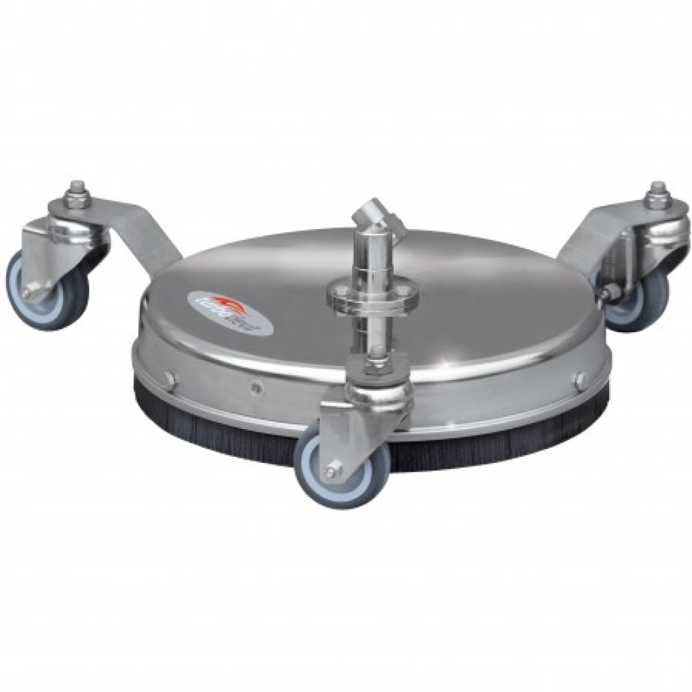 300 mm roestvrijstalen oppervlaktereiniger. Speciaal ontworpen voor professionele reinigingstoepassingen. Geschikt voor warm en koud water hogedrukpompen. Hittebestendige rondom bescherming zorgt voor een veilige hantering door bescherming tegen spatten en stenen. De precisie-rotorarm wordt gecompenseerd, nauwkeurig geëquilibreerd en gelast door robots. Gegarandeerd lage trilling en betrouwbare werking. Geschikt voor toepassingen tot ongeveer 150 uur jaarlijkse bedrijfsuren. Wartels zijn uitgerust met versterkt, zelfsmerende drievoudige lager gemaakt van roestvrij staal, ontwikkeld met een hardmetalen afdichtingssysteem voor hoge omwentelingen per minuut.